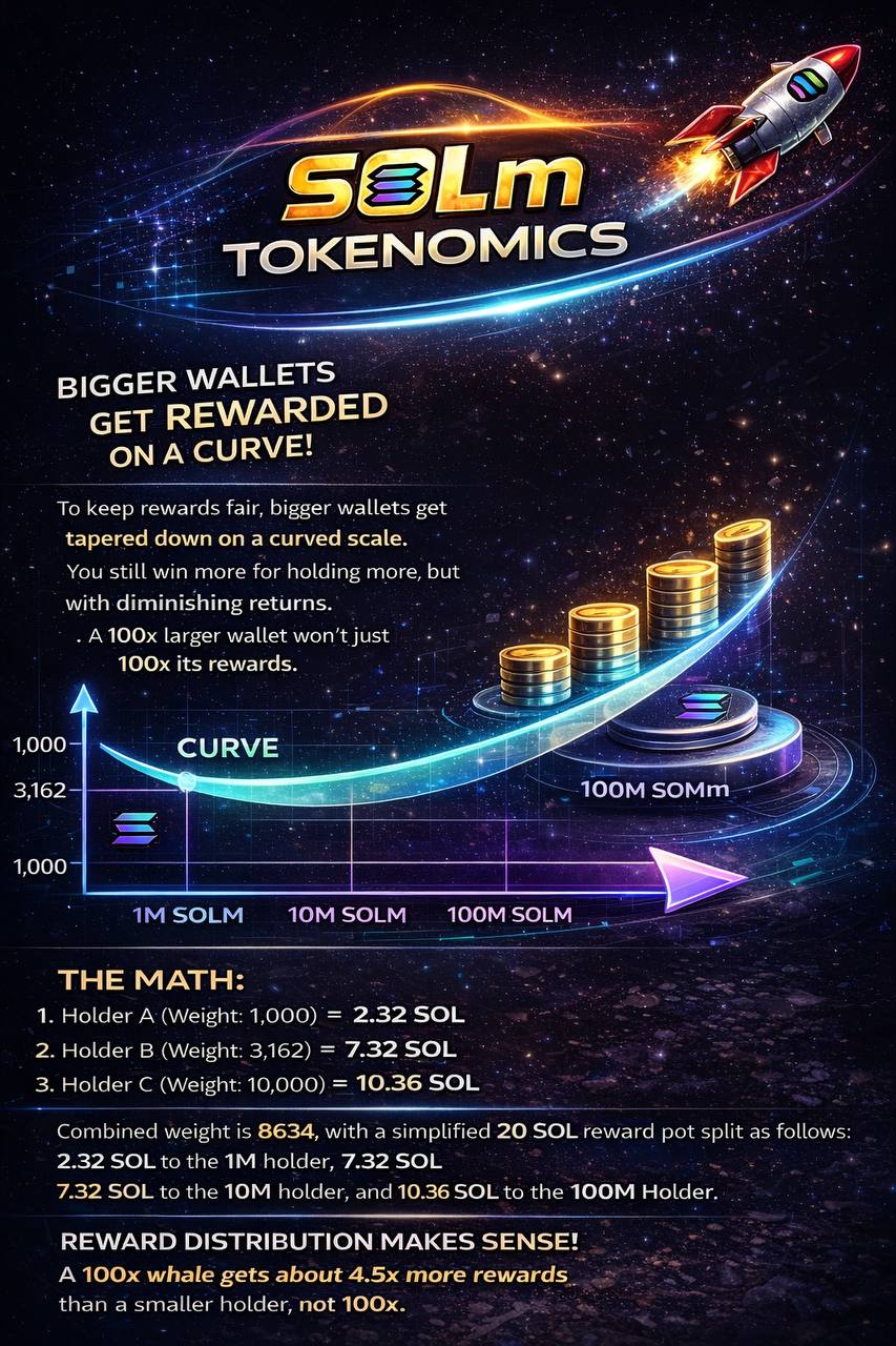 The plan is to lower eligibility to 100,000 SOLM at 1M market cap, once liquidity deepens and smaller holders can participate without destabilizing the reward stream. This early phase protects the structure; the later phase will expand access. Sensible progression. No interpretative dance required :D